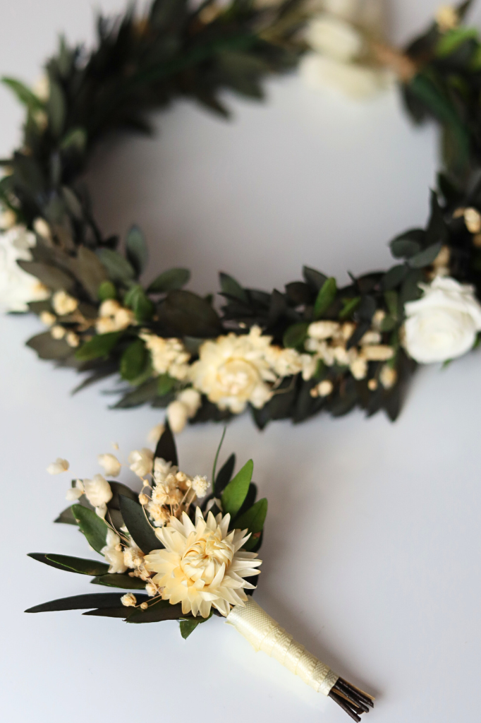 Butonierka Ślubna, butonierka dla Pana Młodego z suszonych kwiatów