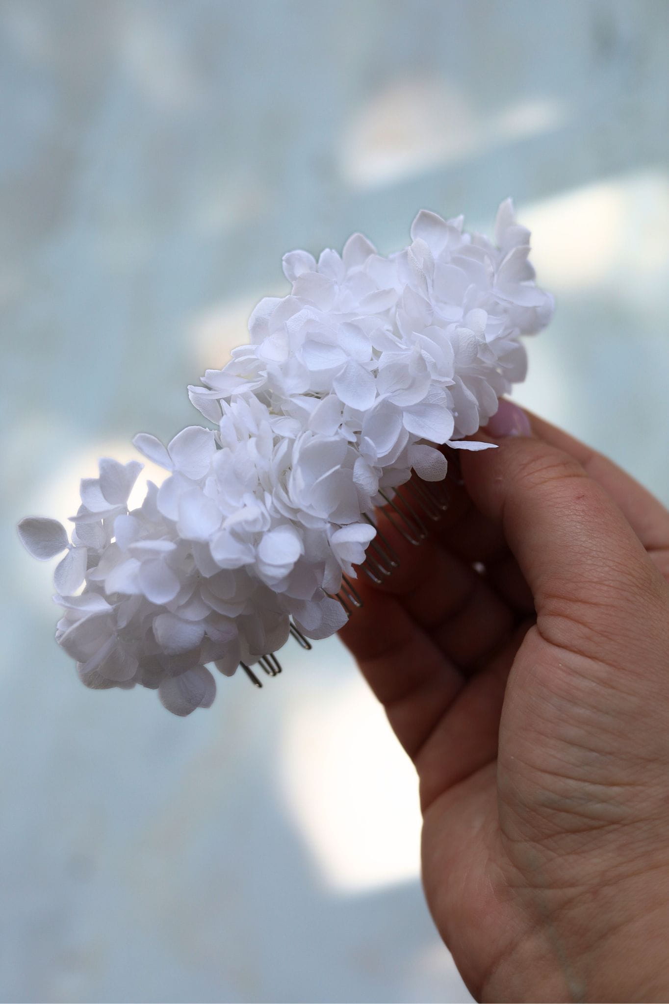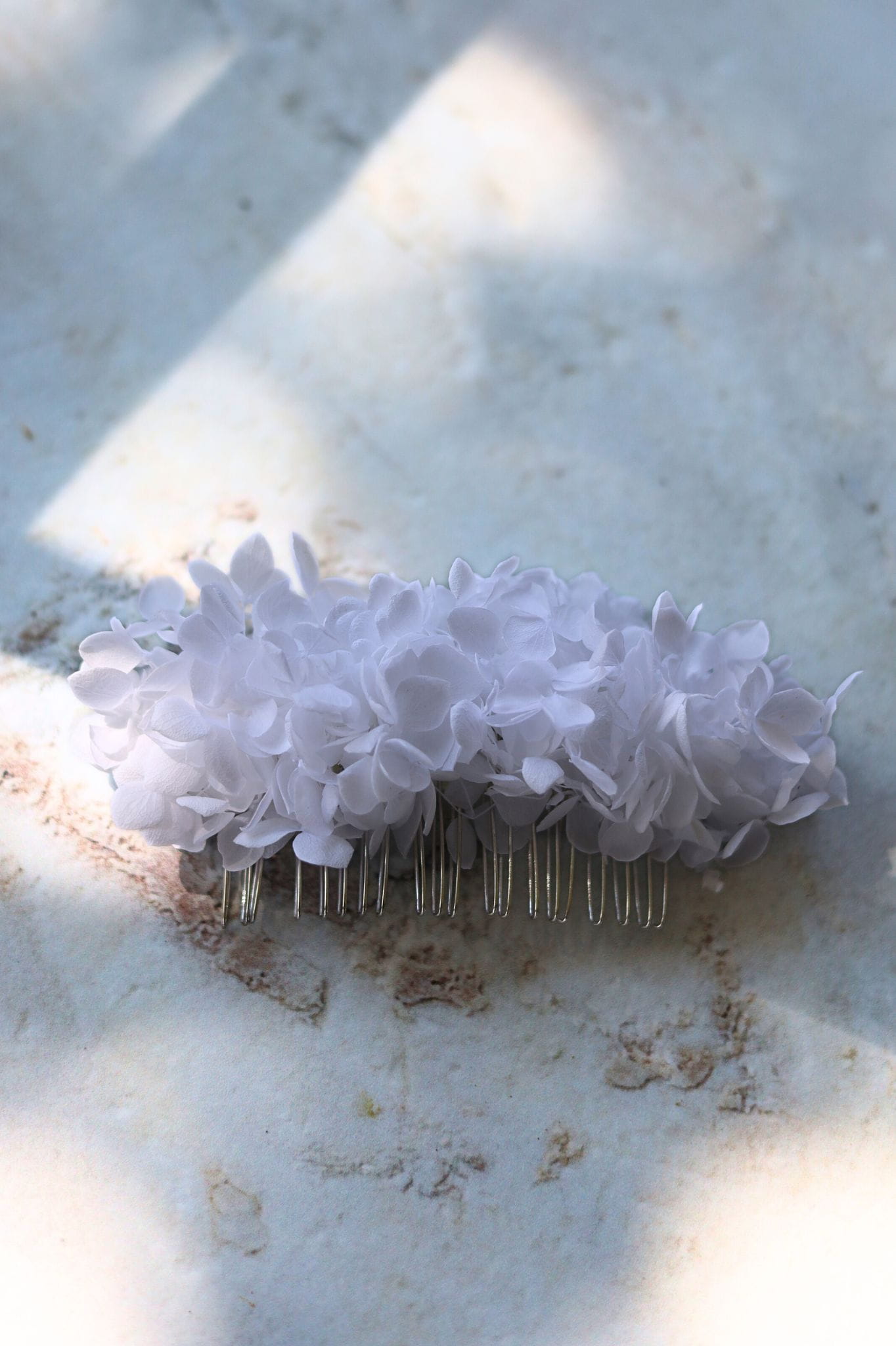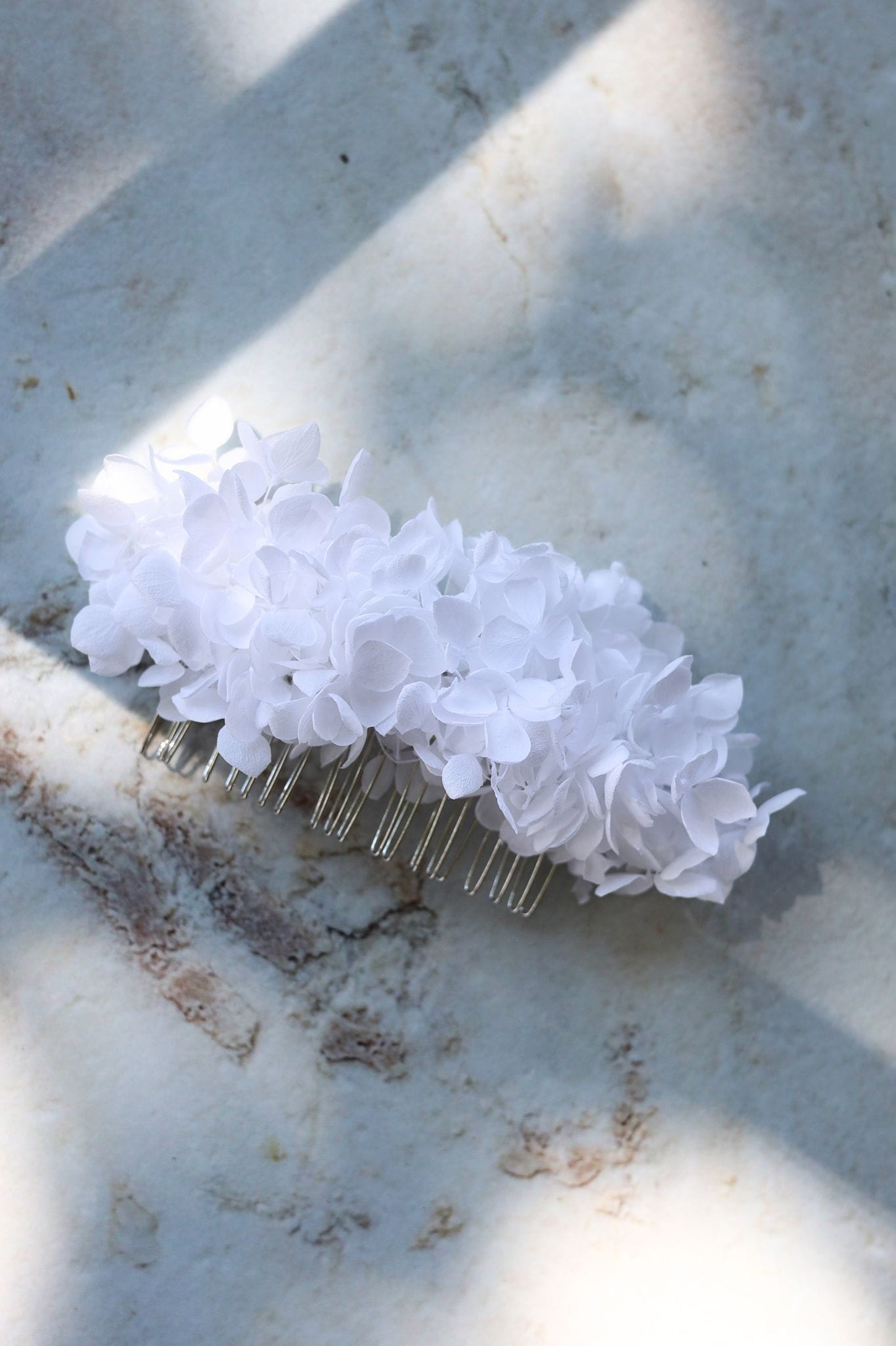 Grzebyk Ślubny z białej stabilizowanej HORTENSJI.