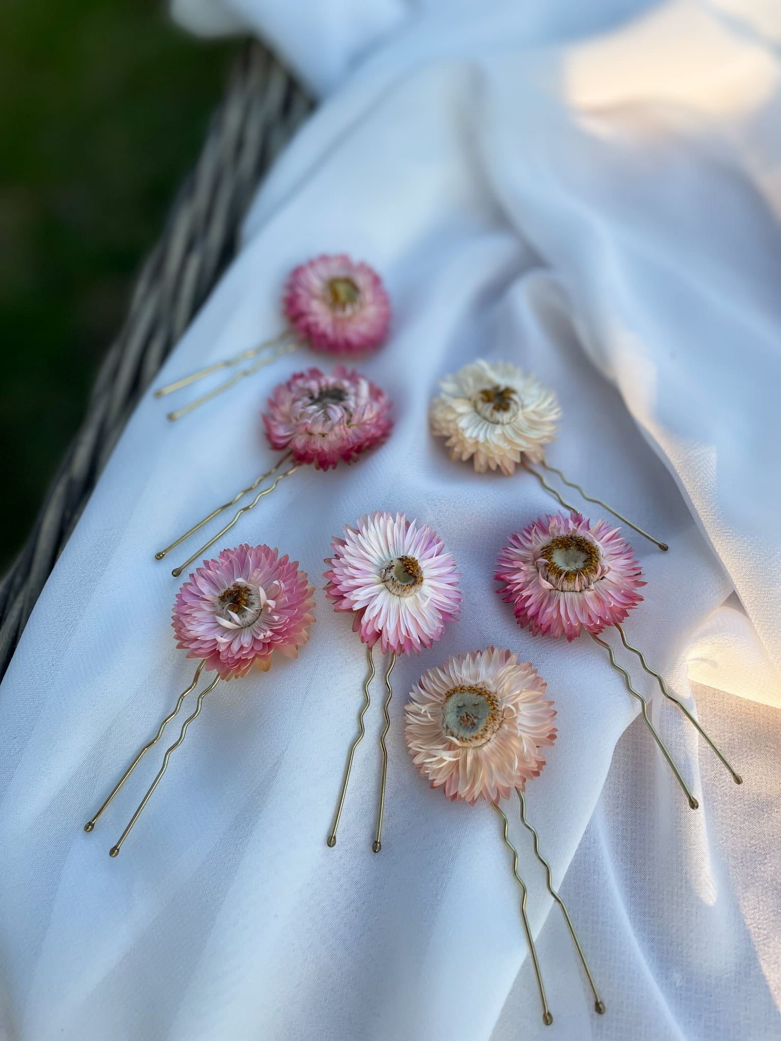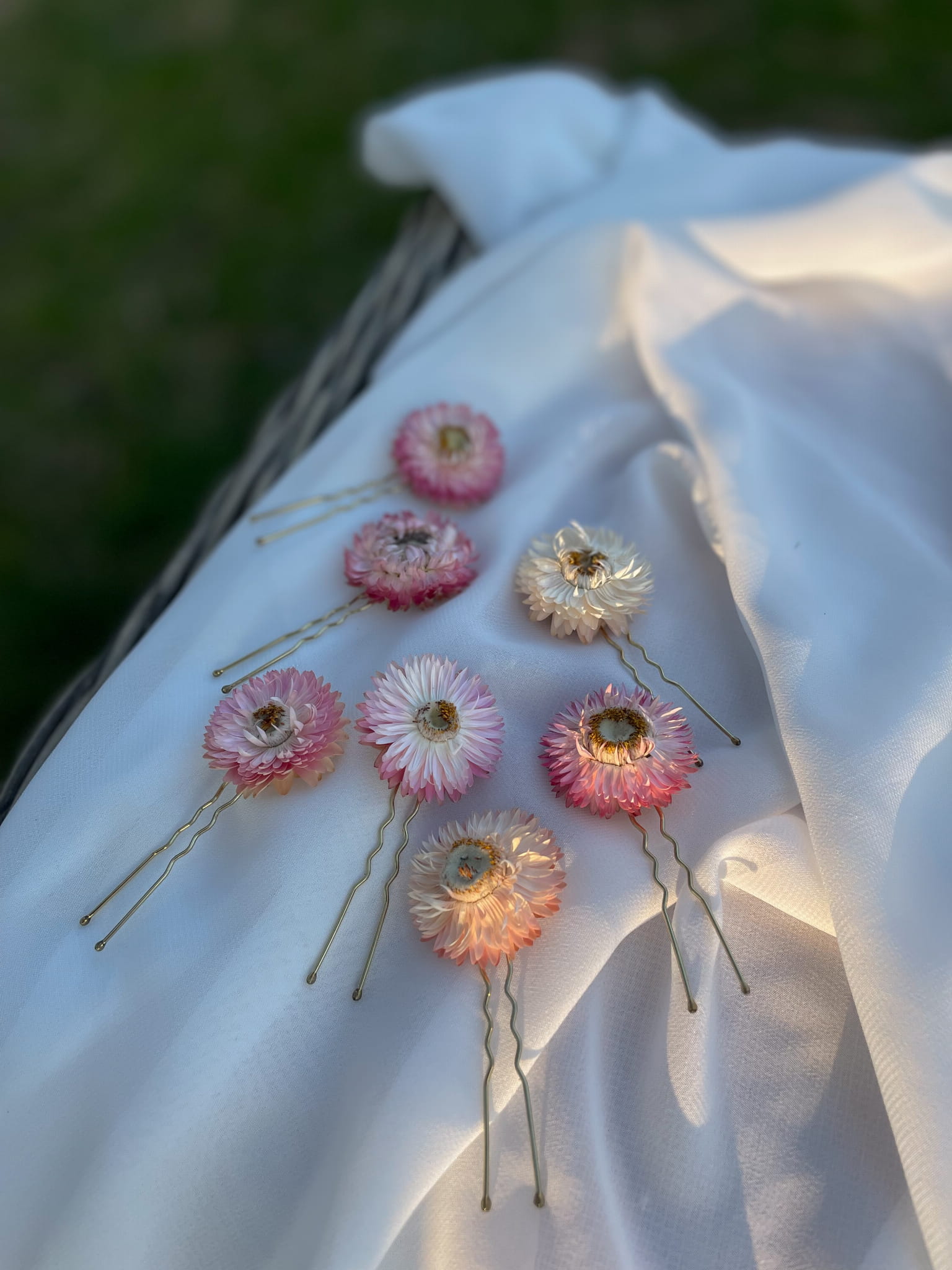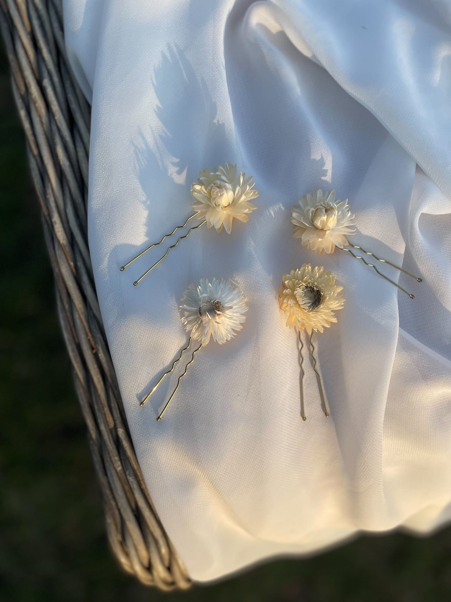 Kokówki ślubne wsuwki do włosów z suszonymi kwiatami KOCANKA
