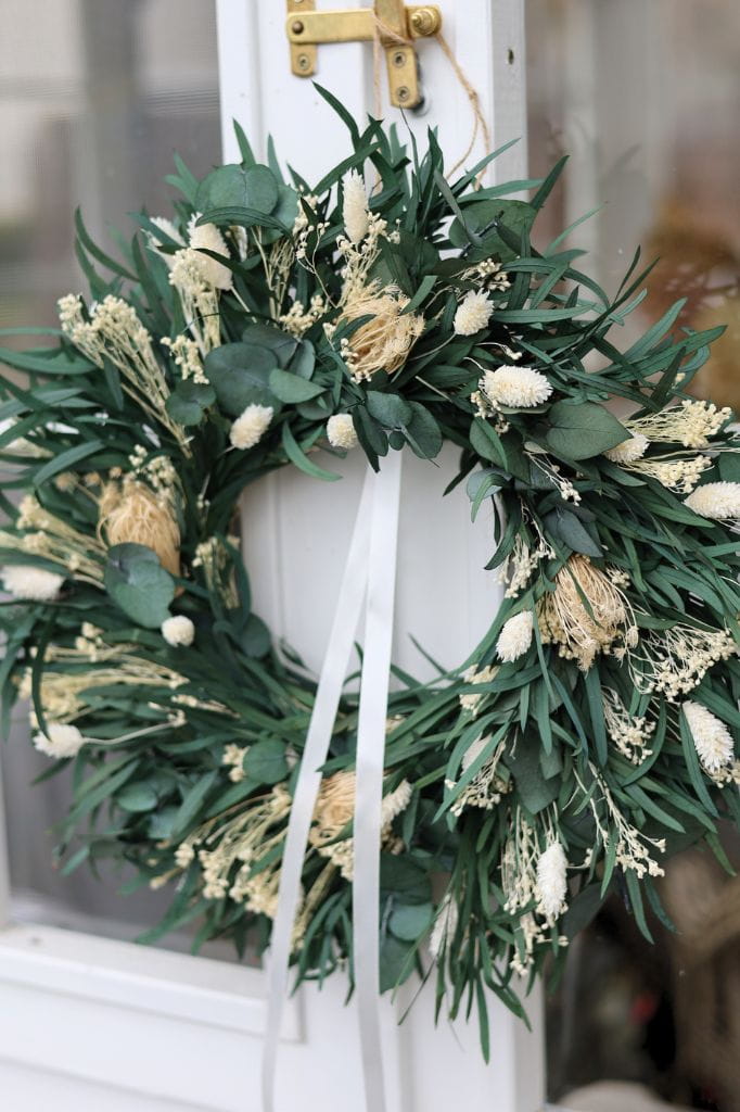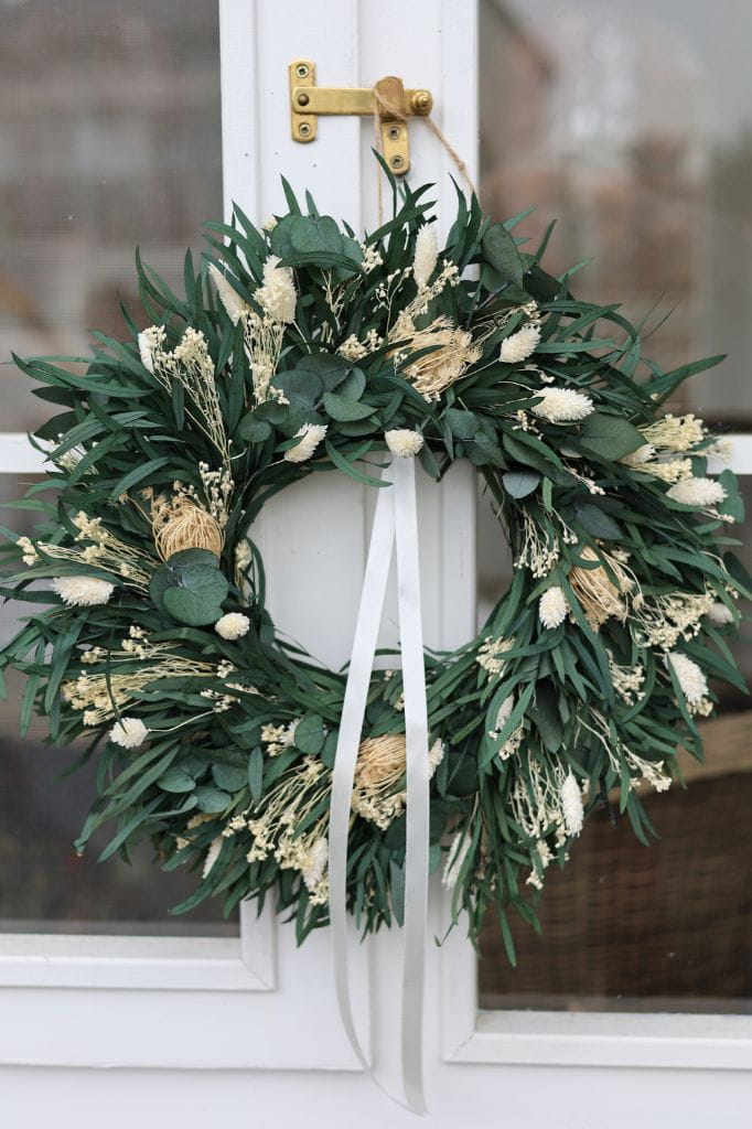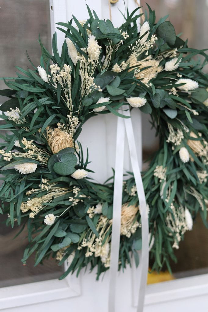 Naturalny Wianek na Drzwi, Stabilizowany Eukaliptus & Białe Suszone Kwiaty