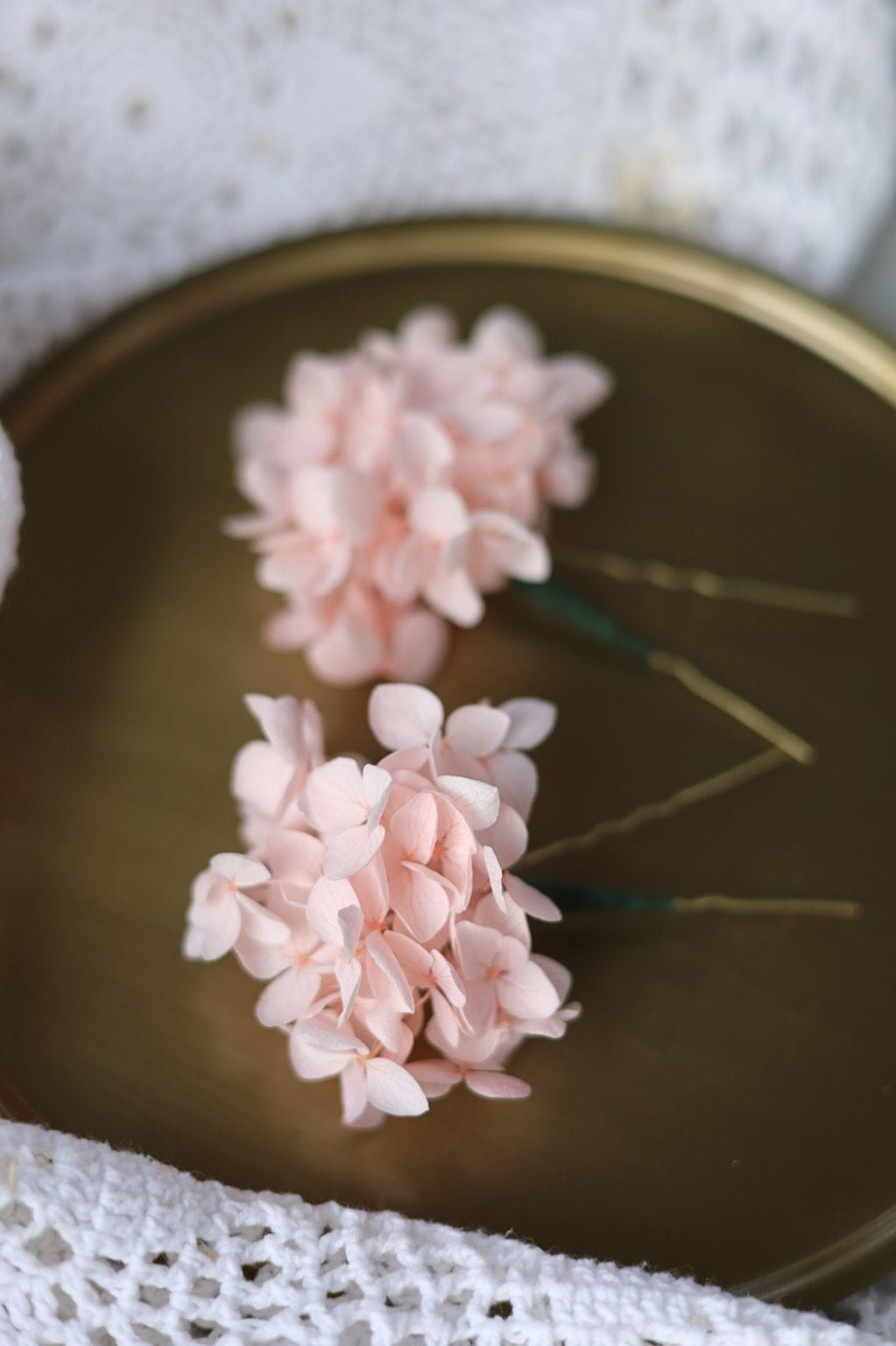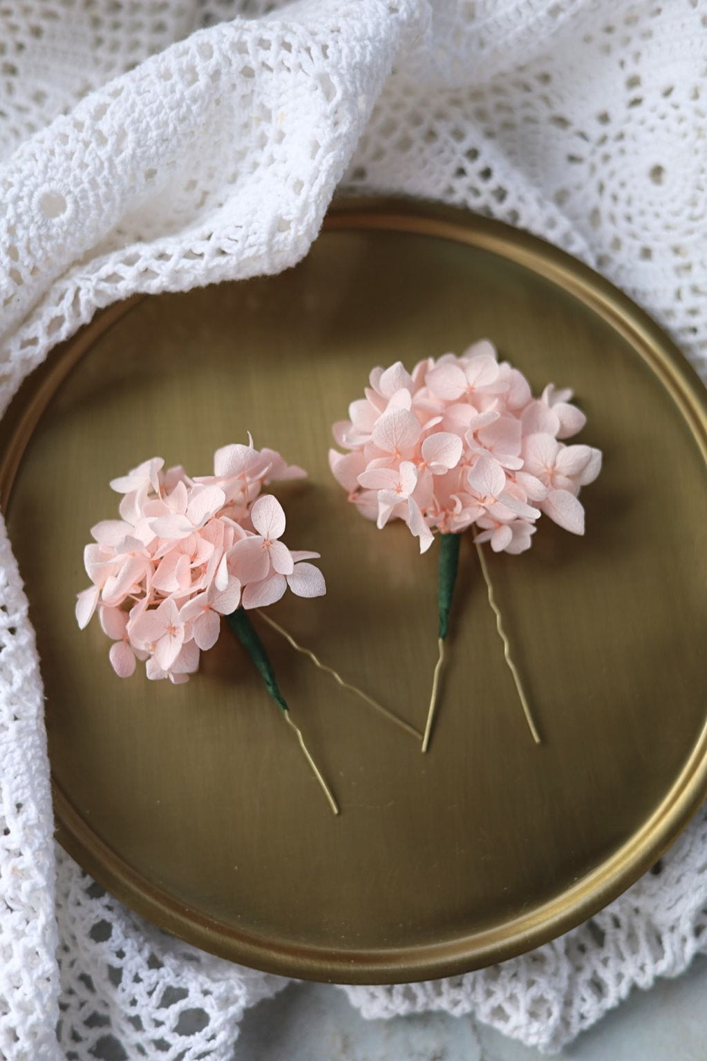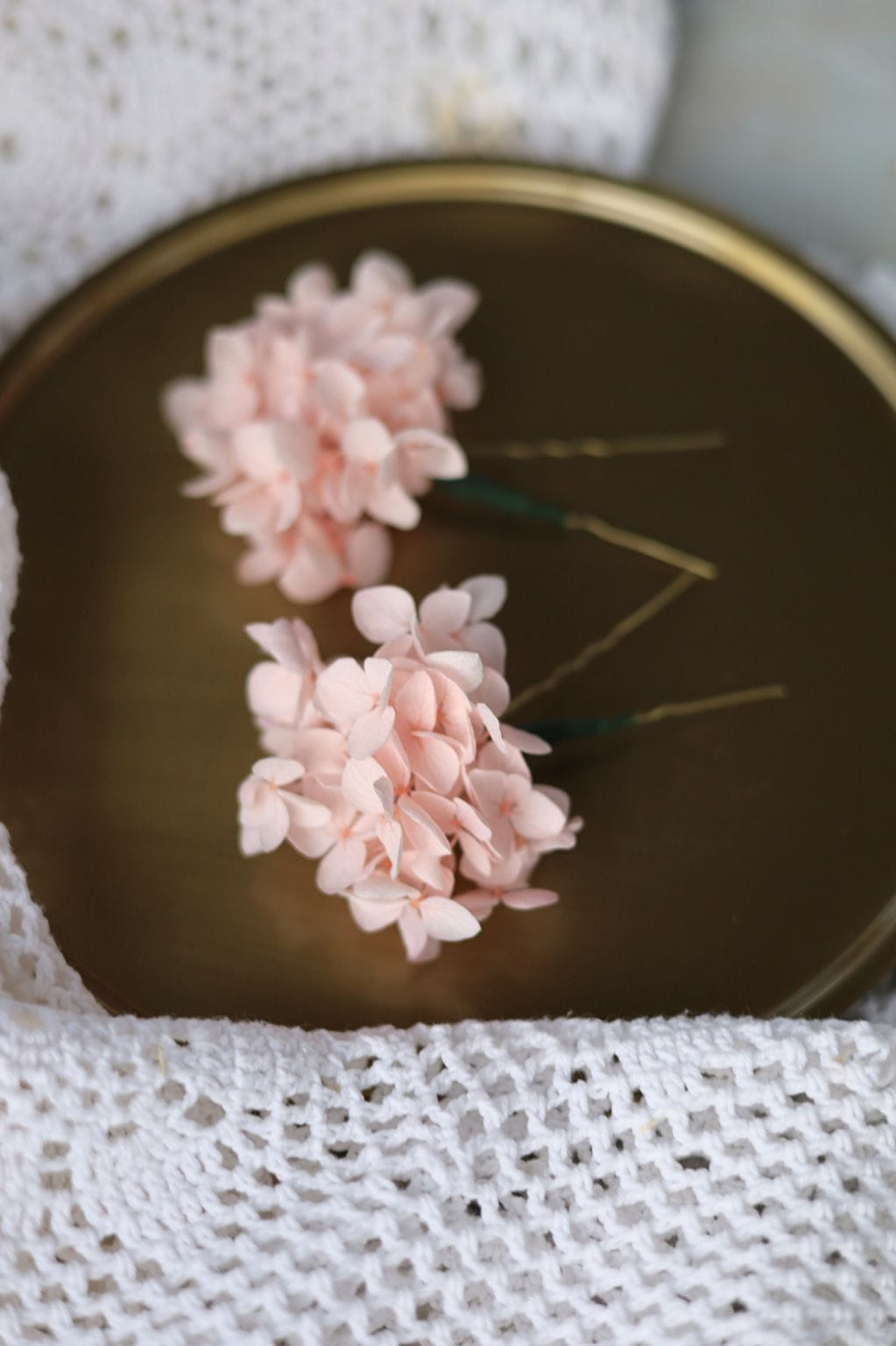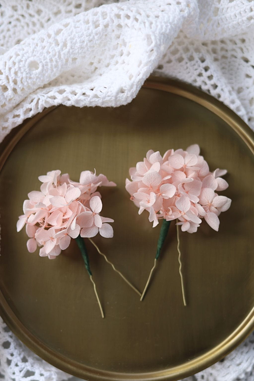 Ozdoba Komunijna do włosów, Wsuwki, kokówki - Stabilizowana Hortensja Jasny Róż