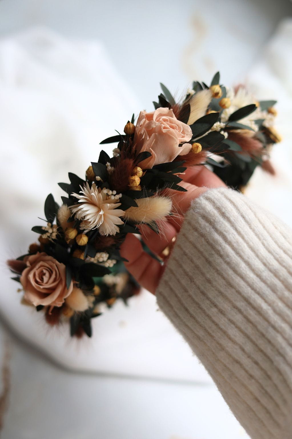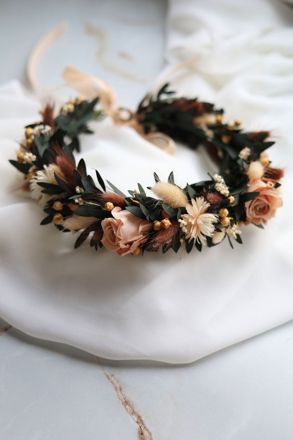 Chcesz, aby wianek pasował idealnie do Twojej wizji? Istnieje możliwość zmiany kolorystyki przewodnich kwiatów. Jeśli masz konkretne preferencje kolorystyczne, prosimy o podanie ich w uwagach do zamówienia.