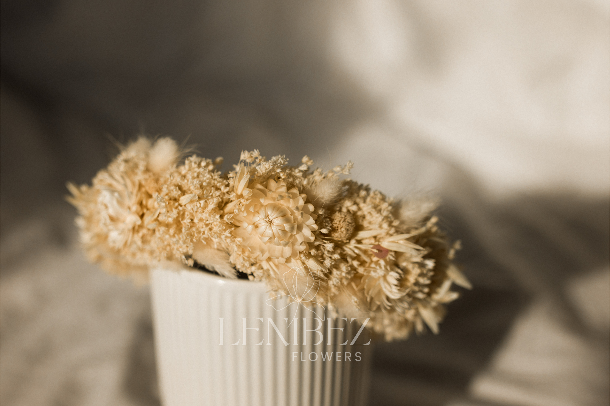 Wianki ślubne, które możecie znaleźć w naszym sklepie to trwała pamiątka na wiele lat. Nasze produkty wykonujemy z najwyższej jakości suszonych i stabilizowanych kwiatów i traw, dzięki czemu zachowują swoje piękno nawet po latach. Możesz cieszyć się ich wyglądem nie tylko w dniu ślubu, ale także mieć go u siebie na długo przed tą wyjątkową uroczystością.